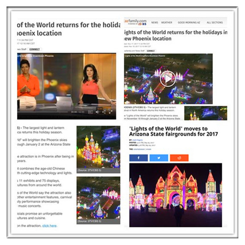 開(kāi)幕式上菲尼克斯印第安原住民、拉丁裔、華人、墨西哥等各族裔文化藝術(shù)團(tuán)體表演了豐富多彩的歌舞節(jié)目,展示了菲尼克斯多元文化風(fēng)采。瑰麗的花燈、燦爛的民間藝術(shù)和強(qiáng)大的演出陣容,園內(nèi)數(shù)千名美國(guó)觀眾無(wú)不歡呼雀躍、拍手稱奇。美國(guó)亞利桑那州各大主流媒體、華人媒體全面采訪報(bào)導(dǎo)了燈會(huì)開(kāi)幕式盛況。菲尼克斯當(dāng)?shù)匦侣劇?Now @ 6 》報(bào)道稱“2017世界之光彩燈嘉年華是北美最大的彩燈節(jié),是全球文化集合地,游客仿佛置身于迪士尼中。”