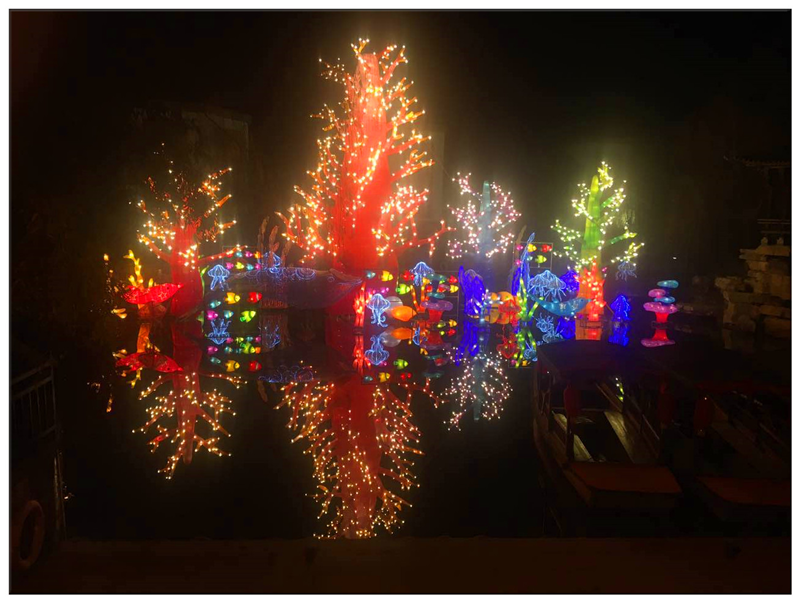 由自貢燈貿集團股份有限公司承制的“2018臺兒莊古城新春燈會”于昨晚華彩綻放。東方彩燈制作的《中華節慶》、《砸錢眼》、《蓋碗茶》、《珊瑚海》、《動漫樂園》、《氣球狗》燈組光彩神韻,熠熠生輝,滿園的燈火交織纏繞,合奏出古城新春的光影交響樂。