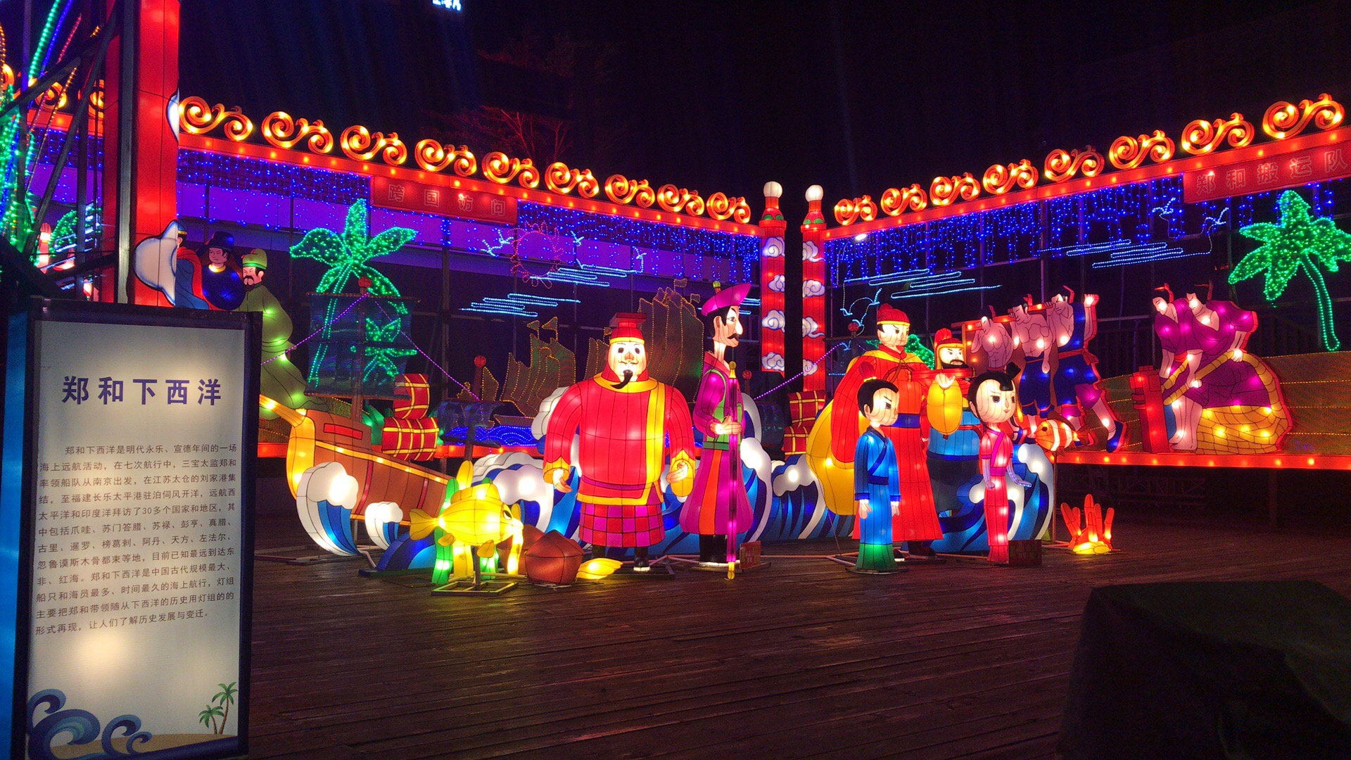 《鄭和下西洋》燈組再現明代永樂、宣德年間一段家喻戶曉的歷史故事,燈景交融,引人入勝,讓人仿佛置身于故事情節中。