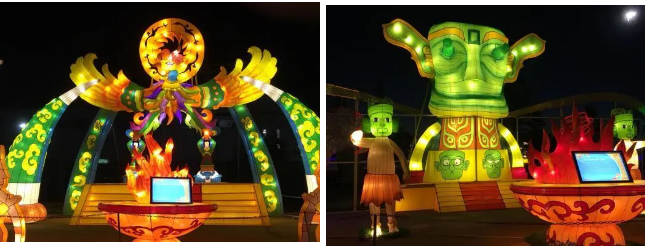中國著名的金沙太陽神鳥元素及三星堆文化為代表的古蜀文明也用彩燈來進行了美好的詮釋。