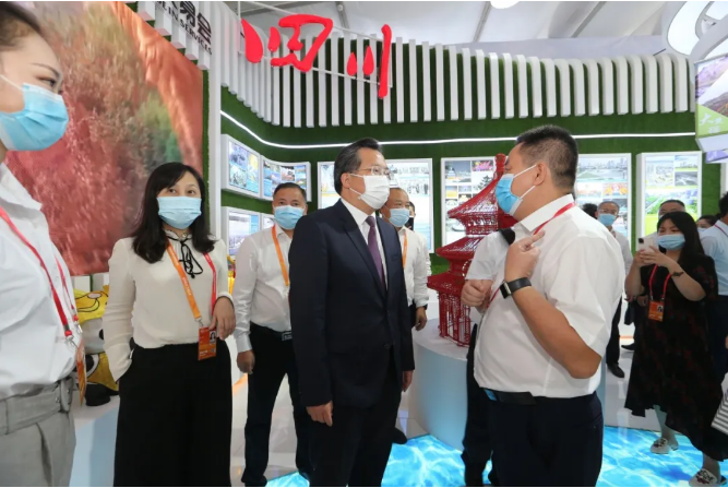 服貿會上,自貢市市委書記范波一行,來到自貢彩燈展廳視察,與我公司執行總裁陶建軍親切交談,范波書記指出:自貢彩燈在保持傳統制作工藝的基礎上,一定要做到設計創新化、創作多元化、工藝現代化、服務精細化、海外市場常態化、業務能力國際化。