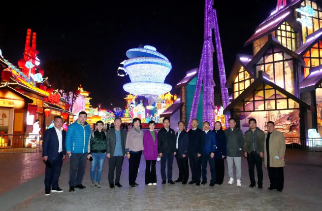 3月4日晚,李金生主席一行參觀了第27屆自貢國際恐龍燈會,調研團成員被美輪美奐、流光溢彩、大氣磅礴的自貢燈會深深吸引,對我市彩燈文化傳承保護、彩燈產業發展給予了高度評價。