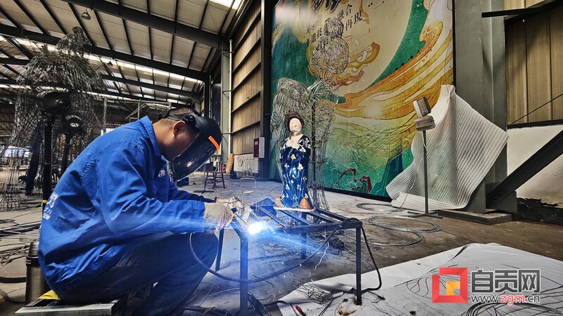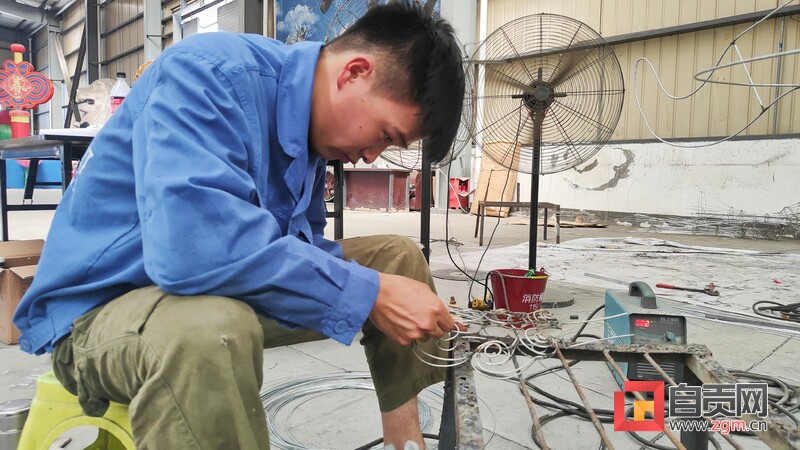 8月10日下午,記者走進(jìn)自貢燈貿(mào)集團(tuán)股份有限公司生產(chǎn)車間,專訪燈貿(mào)集團(tuán)“唐風(fēng)華韻”展品項目。4名彩燈造型師就像魔術(shù)師一般,讓手中冰冷鋼絲,變成了栩栩如生的造型。“從7月中旬以來,我們就開始進(jìn)場施工,工作時并不覺得熱,常常引來一旁同事的關(guān)心。”在30多度的高溫下,38歲的彩燈造型師楊勝平因為太投入創(chuàng)作,衣服濕了又穿干,還全然不知。