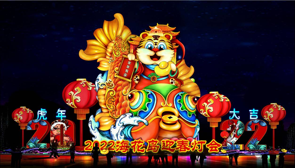 燈貿集團創意、設計、制作的海花島新春燈會以虎年生肖文化為主題,展現椰風海韻、喁喁鳥語,花蕊嫣然的旖旎景象,營造“面朝大海,春暖花開”夢幻般的彩燈體驗場景。