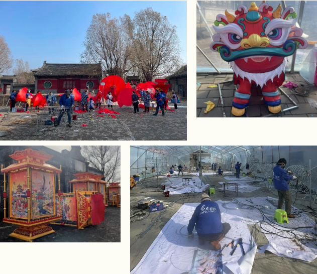 寒風凜冽,雪花紛飛,制燈現(xiàn)場,到處是東方彩燈工匠們忙碌的身影。整個燈展工作正緊鑼密鼓地進行中。